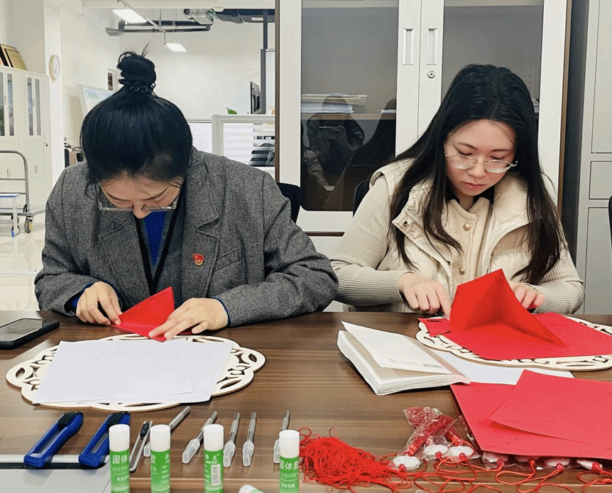 过新年、剪窗花,是我国春节的传统习俗,寄予着人们对美好生活的热切向往。近日,为弘扬中华民族优秀传统文化,营造欢乐祥和的春节氛围,财经商贸学院第一党支部特开展了“折剪启岁,镂刻迎春”主题党日活动,旨在借助剪纸这一传统手工艺形式,加深党员们对传统文化的认同与归属感,为同志们的精神文化生活添上一抹亮色。