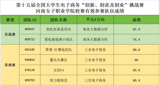 经过网络初选、合规审核及现场比赛,现对有效参赛团队(4支常规赛队伍和2支实战赛队伍)最终评审结果予以公示,公示时间为2025年4月28日-4月30日。公示期满,上报校级赛结果至省赛组委,并根据《第十五届全国大学生电子商务“创新、创意及创业”挑战赛规则》列出相应奖项。